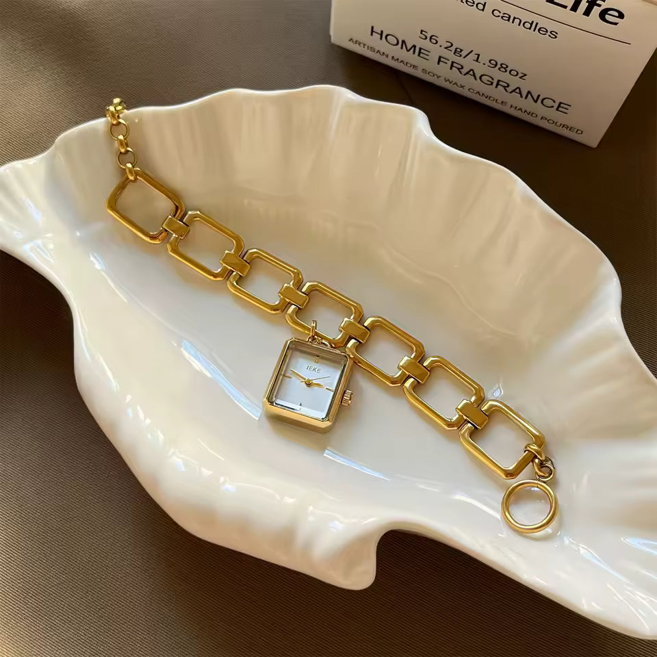 Son style rétro doré apporte immédiatement une touche de luxe au poignet. Elle attire les regards sans en faire trop et donne cette élégance naturelle que toutes les femmes aiment. Une montre qu’on remarque et qu’on complimente.